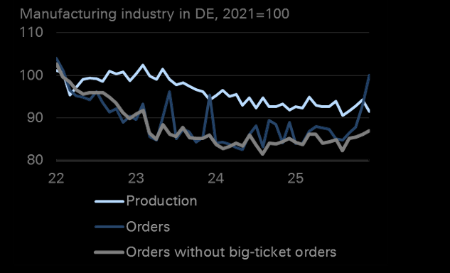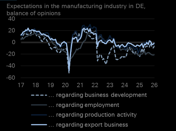 Deutsche on Deutschland: "For 2026, we are confident that production in the manufacturing sector in Germany will rise again. An increase of 2 to 3% seems realistic. This would be the first increase in industrial production since 2021 and only the second since 2019."