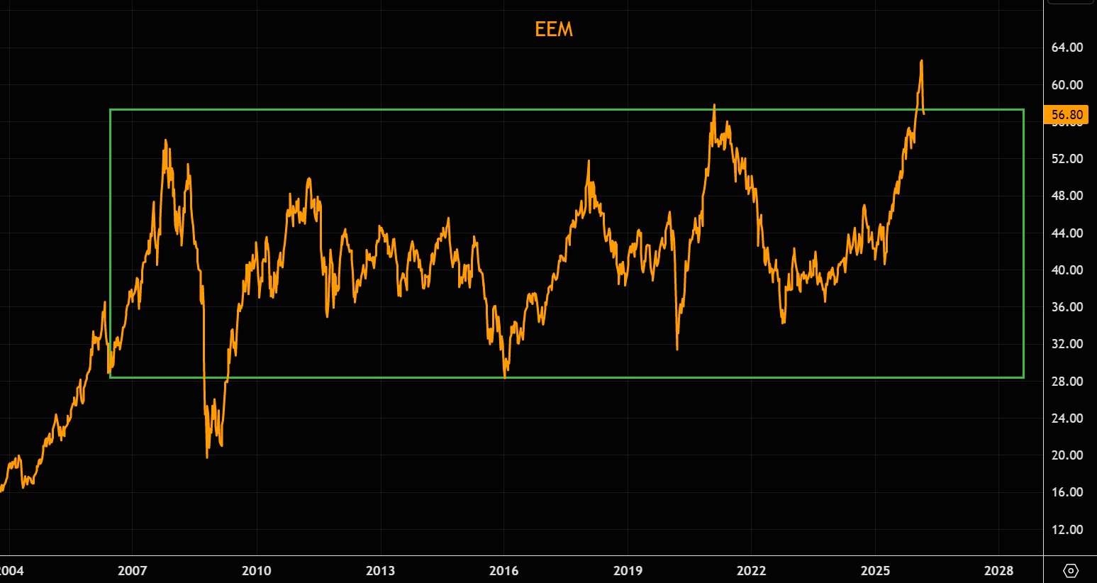 EM is a classic mean-reverting market. Consensus turns extremely bearish at the bottom of the range and very bullish at the top. Was this just another fake breakout?