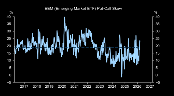 Put call skew for EEM has exploded to the upside.