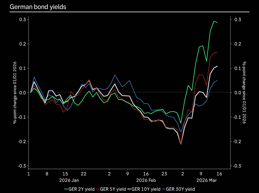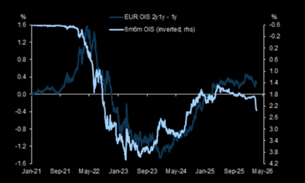 "...the growth-driven upside for Bund yields we have previously been expecting will be harder to achieve. As a result, we have revised our Bund curve forecasts flatter, with Bunds likely to stay around the 3% range for 2026 (rather than rise to 3.25% as we previously expected). In addition, the European front-end looks too steep for the level of hikes priced." (George Cole Head of European Rates Strategy).