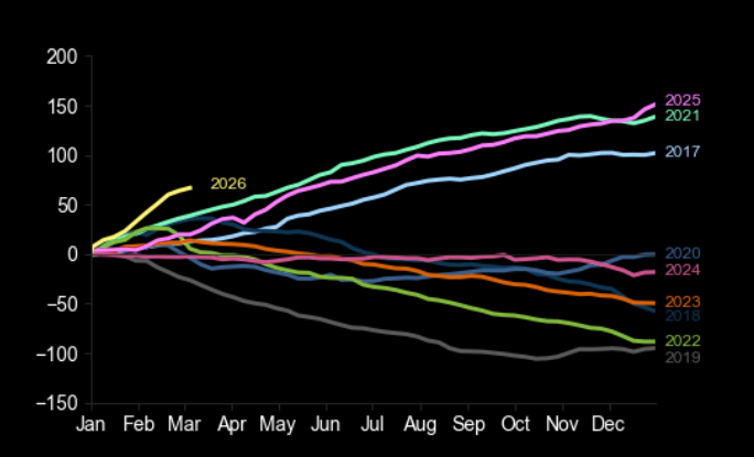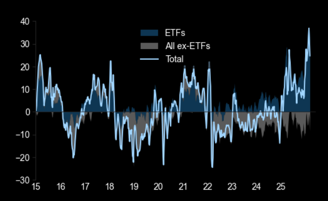 HFs net sold European equities last week at the fastest pace since mid-April ’25, driven almost entirely by short sales. Europe is now the most $ net sold region in March MTD.