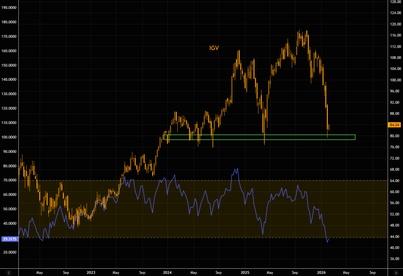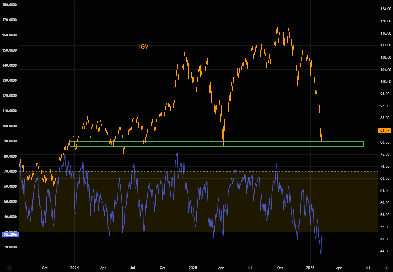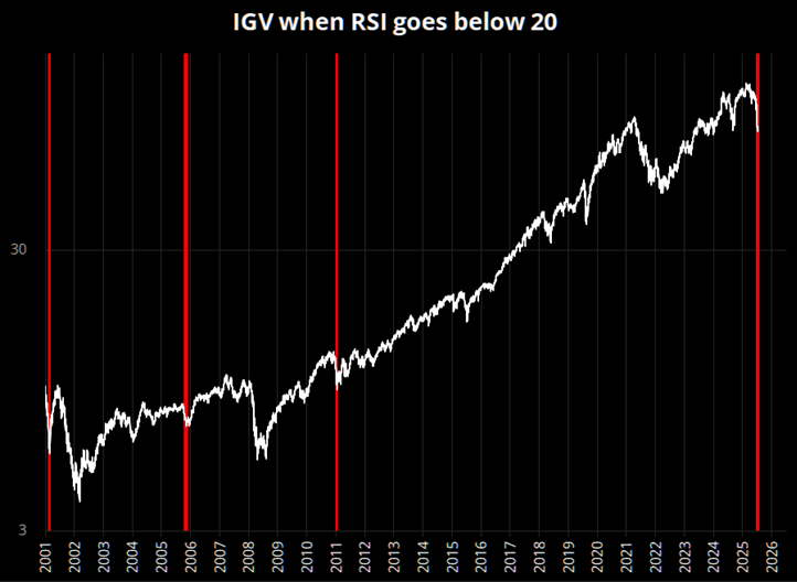 IGV has a history of forming local lows when RSI reaches extremes like the one we’re seeing now.