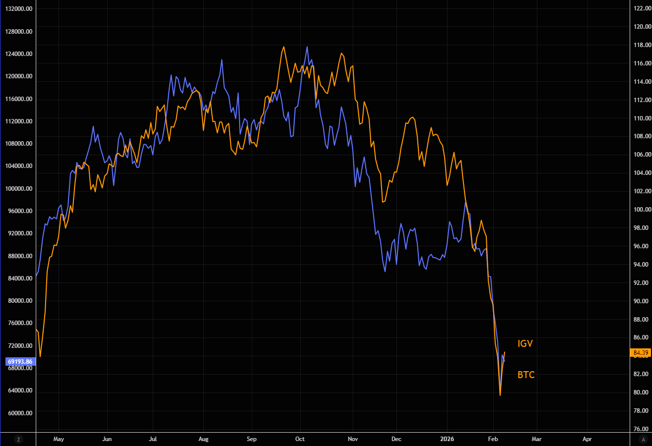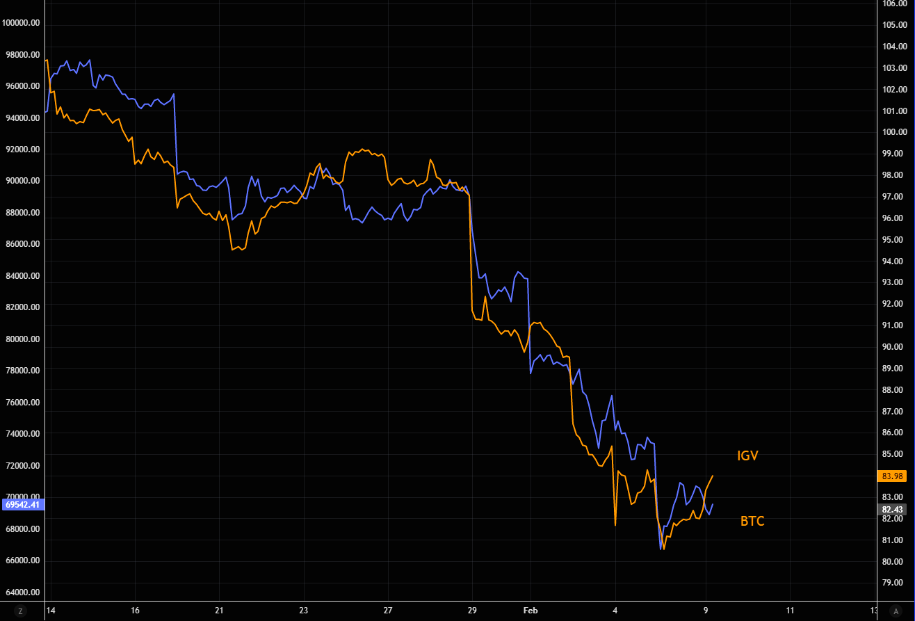 IGV and BTC have moved in very close tandem for a long time. Could we have IGV extend the bounce without BTC joining? You decide.