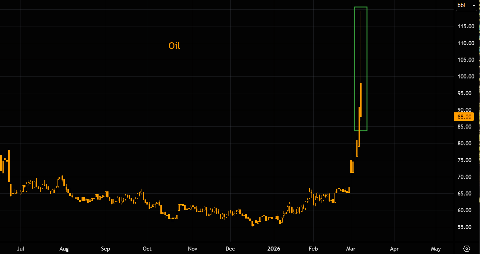We did not expect oil to explode in this fashion, but remember that oil typically mean-reverts over time, and chasing extremes is usually a very costly strategy. Notably, we essentially kissed the 2022 highs during today’s panic spike.