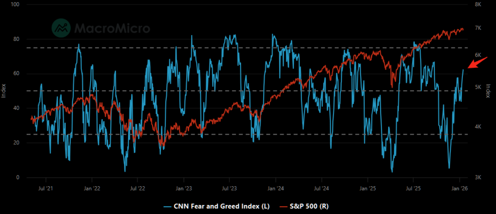 We aren't in extreme greed territory, but closed last week with greed at the highest levels since September.
