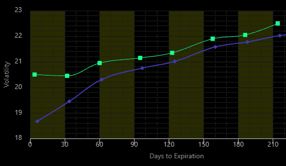The sharp move higher in the front end of the VIX curve suggests investors remain heavily focused on near-term stress. Chart shows today vs Wednesday.