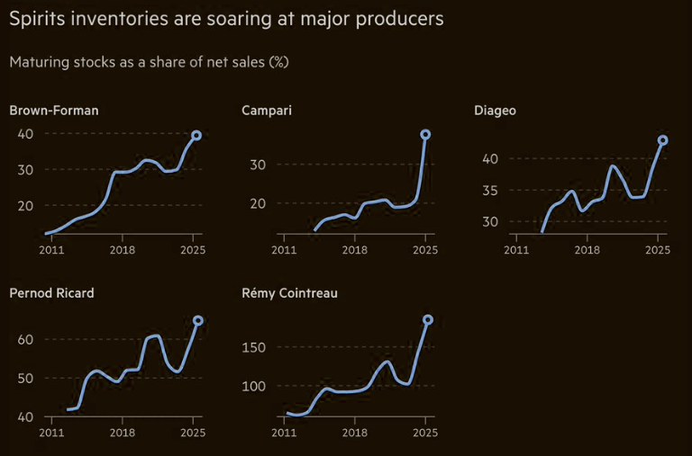 Alcohol companies are sitting on huge stockpiles as demand keeps falling.