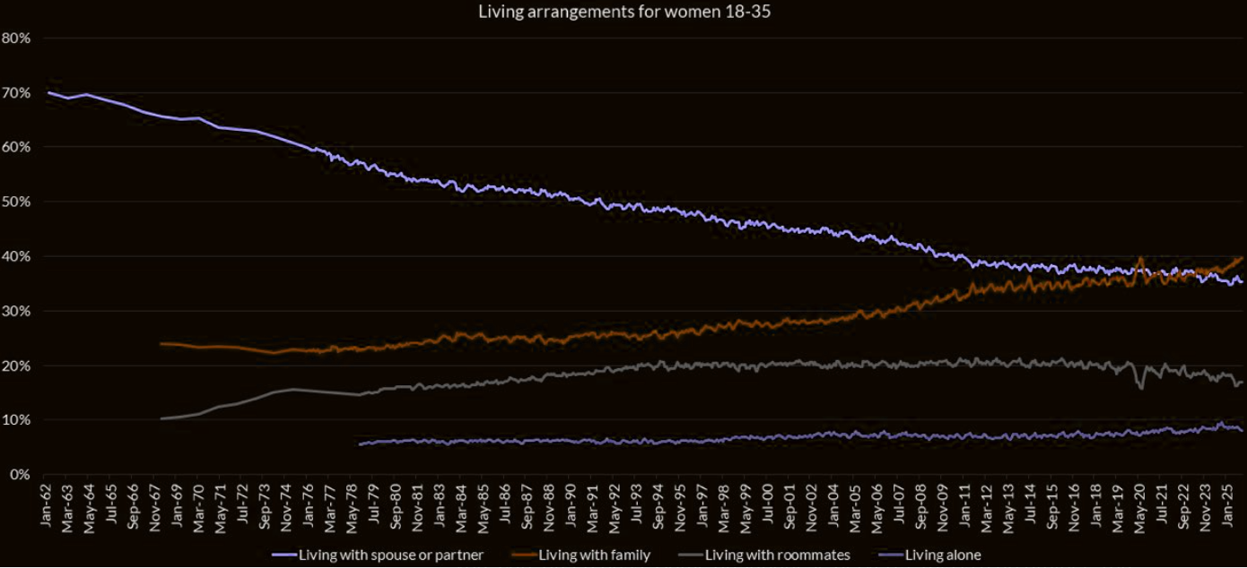 More and more girls age 18-35 are living with their family. Less and less are living with a spouse or partner. Femcels are real.