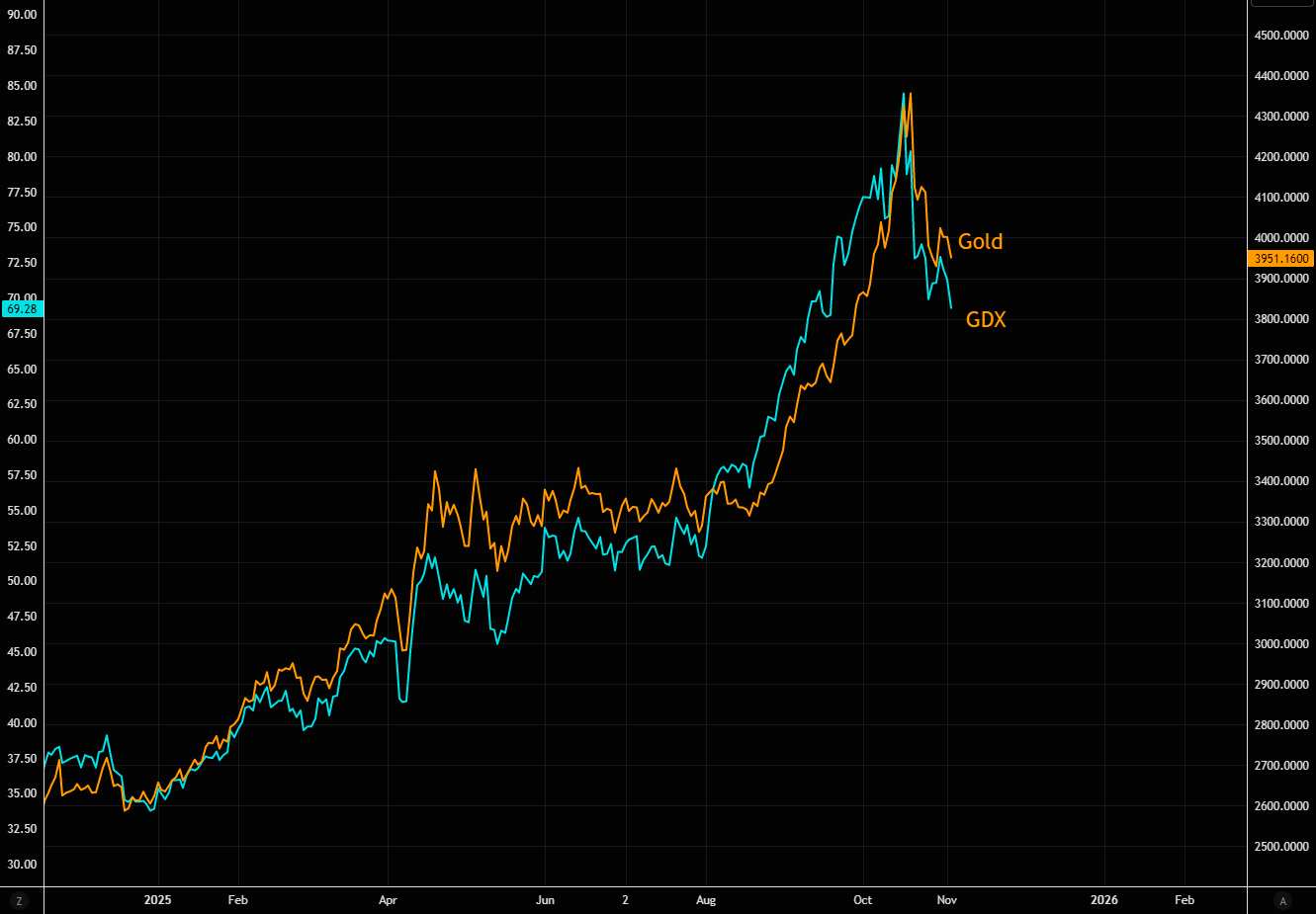 GDX leading? Last time GDX closed here, gold traded around $3700.