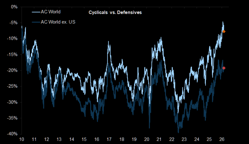 New! Cyclicals are now as expensive as defensives