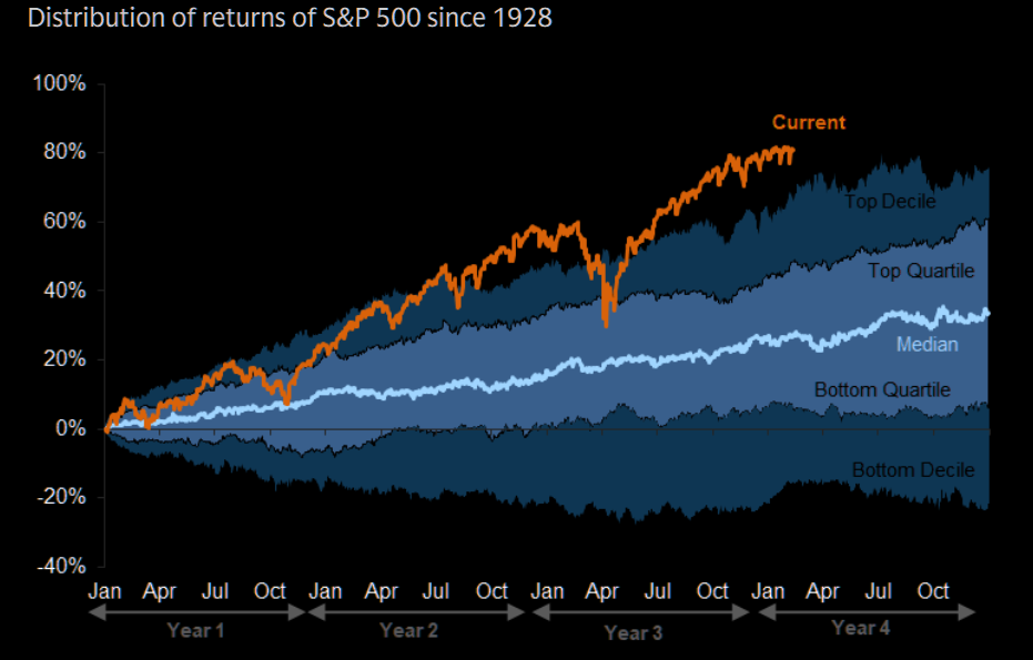 Oppenheimer: "Near-term risks are more elevated given that the equity bull market, particularly from the pandemic lows and led by the US, has been unusually strong."