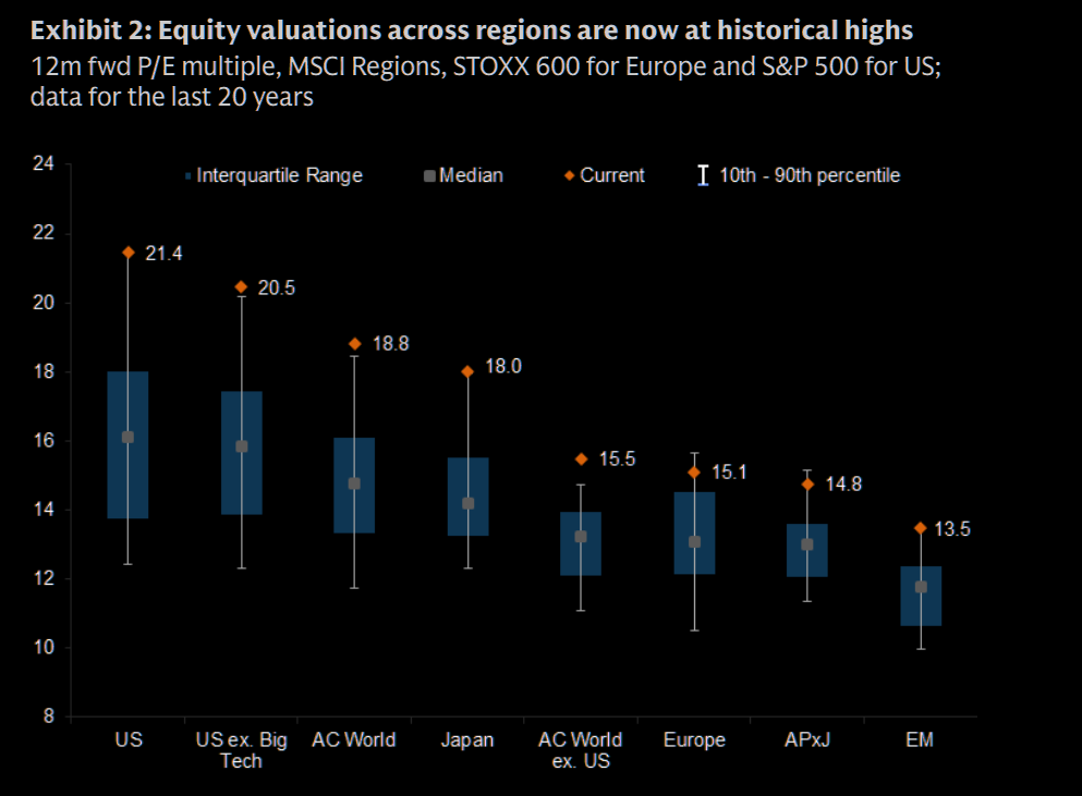 Oppenheimer: "...broadening of equity returns outside of the US market over the past year has resulted in all regions now having valuations above their own longer-term histories."