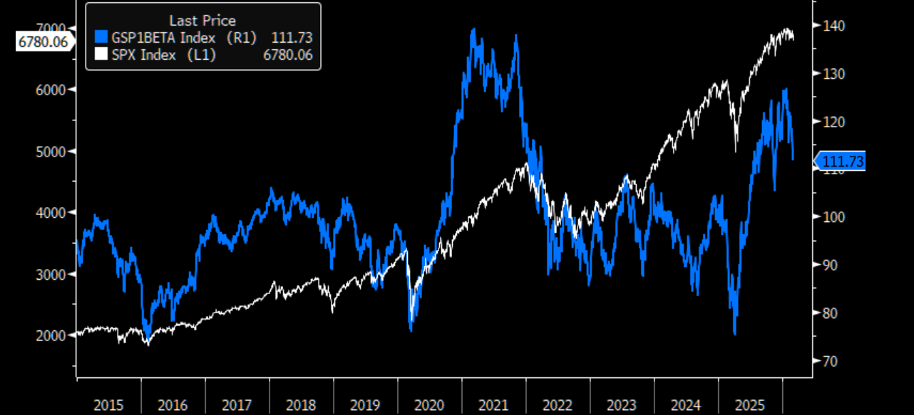 "In a market drawdown, being short high beta vs long low beta names have paid off every time. Our Beta pair (GSP1BETA) have proven to be an efficient hedge during the top 10 SPX drawdowns in the last 10 years (100% hit rate)."