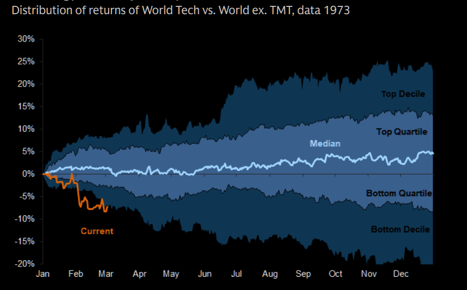 We have of course seen one of the weakest periods of relative returns for technology compared with other sectors over the past 50 years.