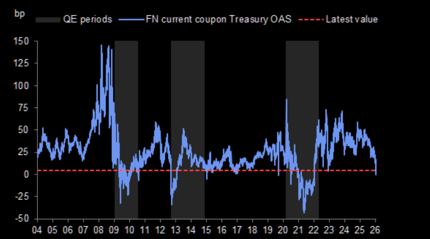Current coupon OAS is at levels last observed during prior Fed QE purchase programs.