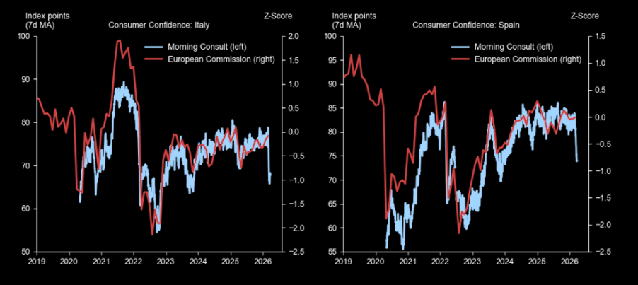 Forget the "things can only get less worse" case. Consumer confidence is taking a serious hit especially in Spain and Italy - the previous bastion of strength.