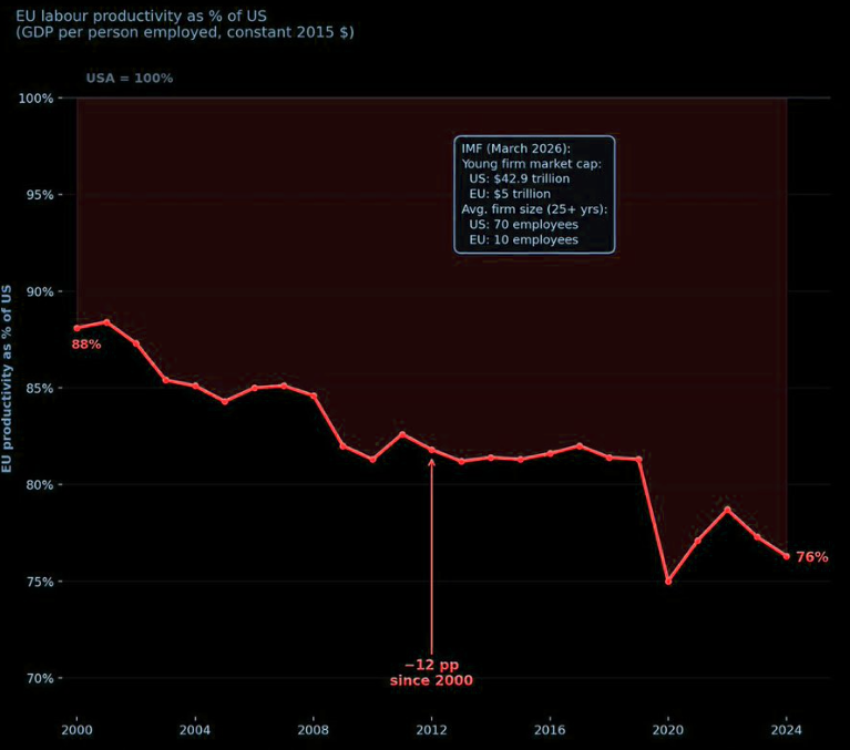 "One of the reasons why Americans are wealthier than Europeans is productivity. Europe, with its regulations, overtaxation, and left-redistribution mindset, throttles innovation, productivity and prosperity." (M Arouet)