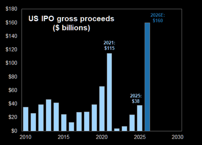 GS: "We forecast 120 IPOs this year and $160 billion in gross IPO proceeds in 2026."