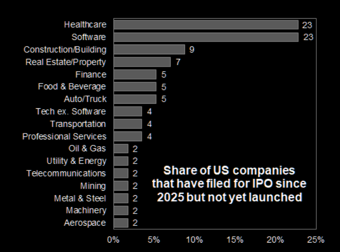 The IPO backlog is Tech, AI, and Healthcare. Everything else is noise.