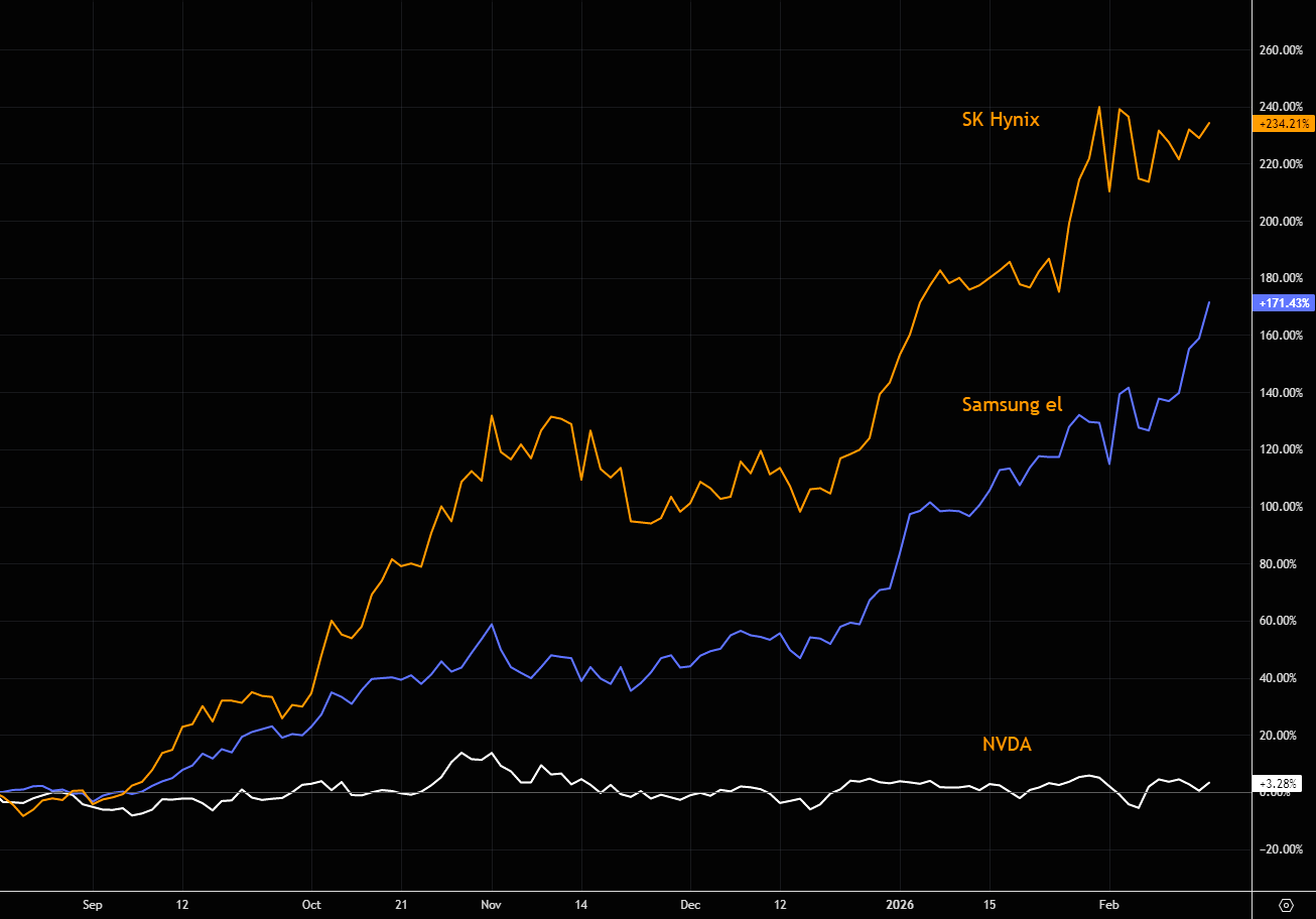 The AI space is so much more than waiting for NVDA to restart the engines. Performance over the past 6 months: SK Hynix +234%, Samsung el +171%, NVDA +3%. Great video worth watching on this theme here.