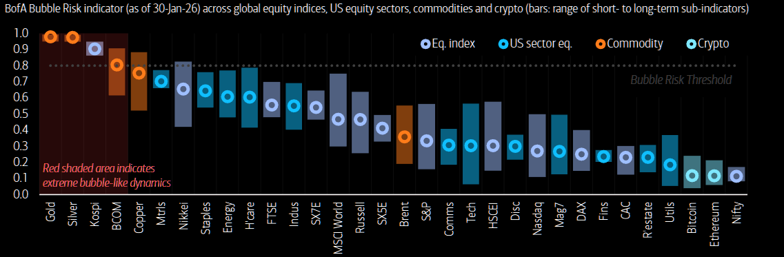 KOSPI is the only equity index in bubble risk territory according to BofA's model.