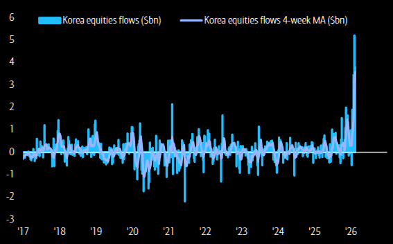 Record 4-week inflow from Korea equities.