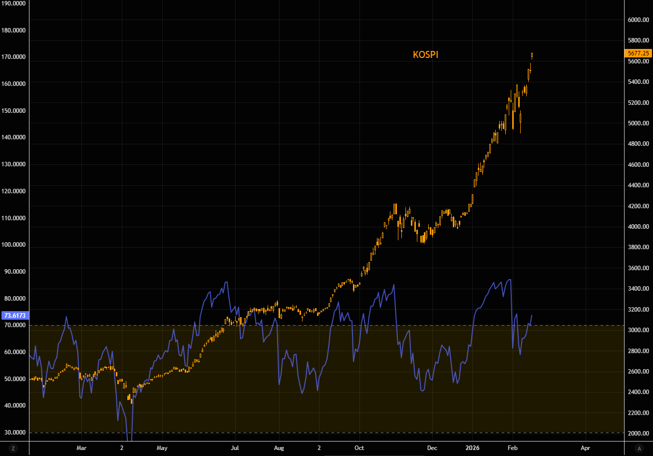 ...extremely overbought. We have seen much higher RSI readings during peak upside panic moves in the KOSPI.