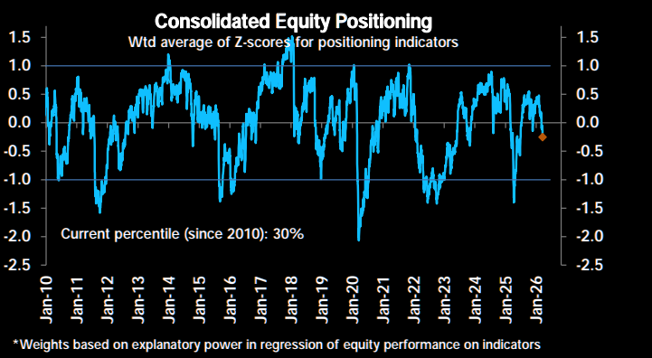 Consolidated equity positioning is underweight, at the lowest levels in 9 months.