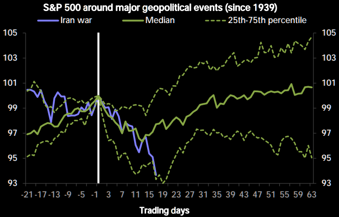 Historically, markets tend to drop around 6–8%, bottom within roughly three weeks, and fully recover in the following three, often well before the underlying conflict is resolved.