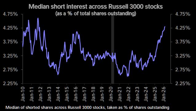 Median cash shorts taken as % of shares outstanding for the Russell 3000.