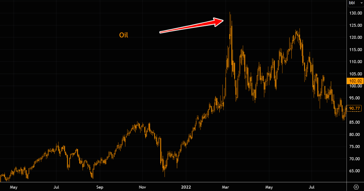 The last major oil top occurred in March 2022. Back then we saw a similar (though smaller) shooting star, followed by an aggressive reversal lower.
