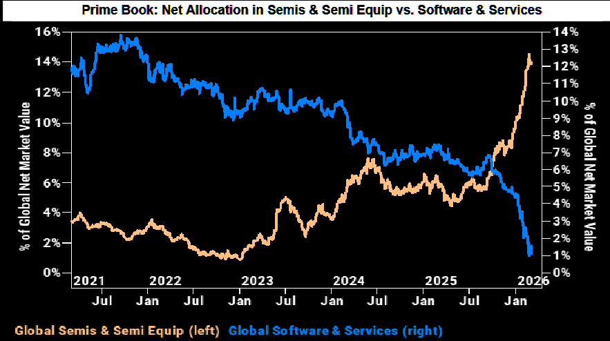 Despite a proper bounce in software this week, we cannot see much closure of the positioning gap between software & semis.
