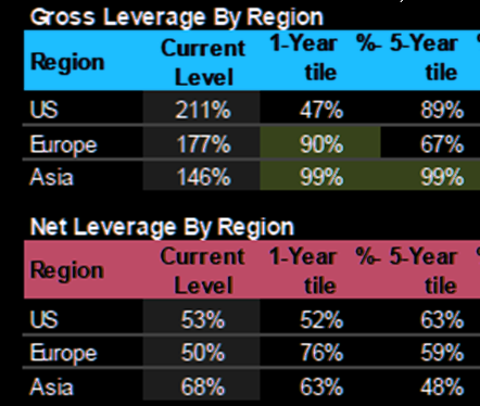 This is somewhat concerning. More "extreme" positioning in Europe than in the US for the first time "ever" (as measured by 1-year percentiles).