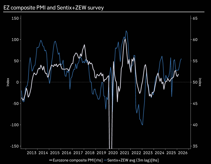 Eurozone manufacturing PMI leaps to the highest level since 2022, Sentix/ZEW rise too.