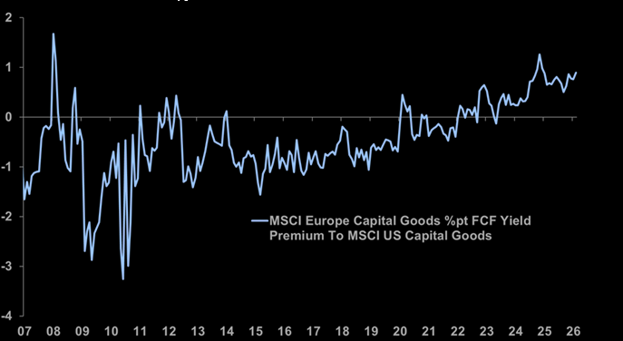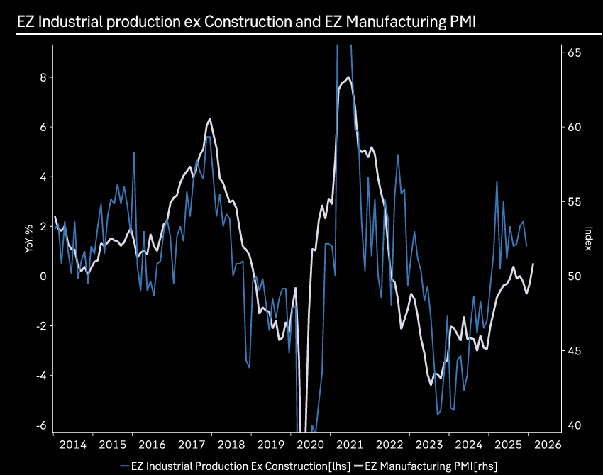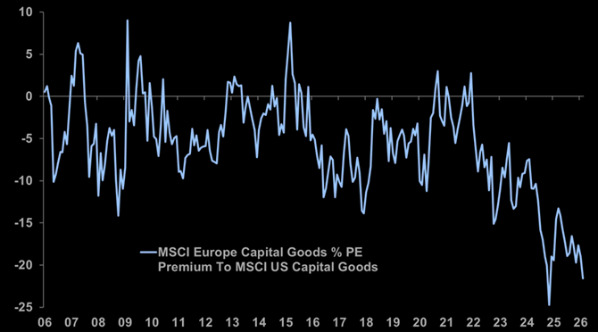 EU Industrials sit at roughly a 22% PE discount to US peers, with capital goods offering about a full point higher free cash flow yield and ~30% discounts on EV-based metrics – levels rarely seen outside crisis periods. Macro signals are improving at the margin. Flash Eurozone composite PMI rose to 51.9, with manufacturing back above 50 and Germany leading. The UK printed a 22-month PMI high, strong retail sales, and a sizable budget surplus. ECB President Lagarde reiterated policy continuity through 2027. So, Europe might not be bracing for a storm – more like it’s waiting for confirmation the clouds are thinning. Valuations argue for upside, macro is stabilizing, but until earnings reactions normalize, it remains a selective opportunity set rather than a broad breakout. (Morgan Stanley)