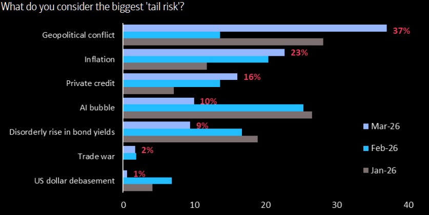 Geopolitics is now the biggest tail risk according to the latest FMS.