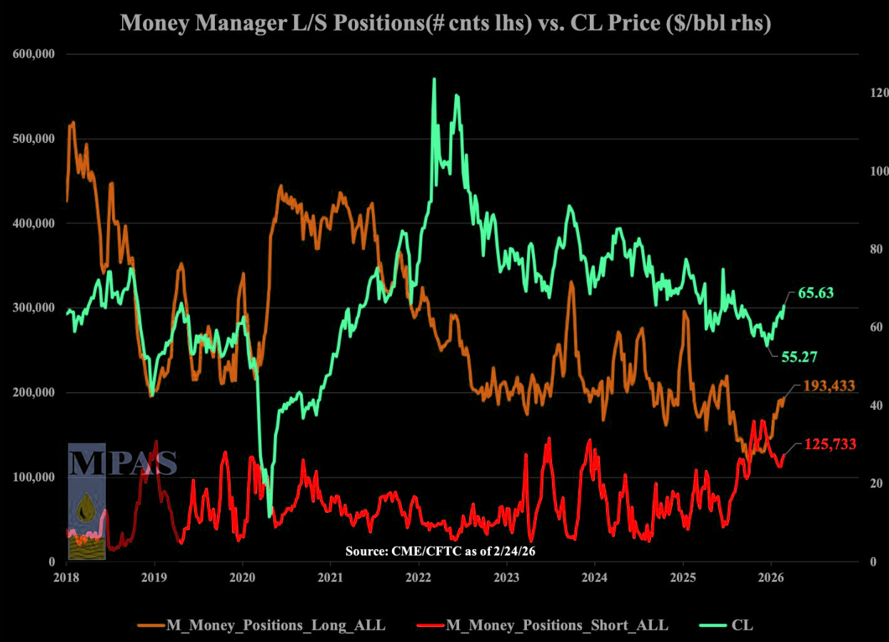 Longs have increased and shorts have been trimmed, but positioning is not extreme.