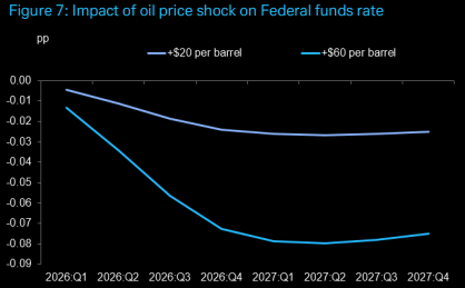 In the baseline scenario, assuming oil follows their commodities team’s forecasts, year-over-year headline CPI is expected to edge up from 2.4% in January to 2.7% in May, before easing back to 2.0% by December 2026.