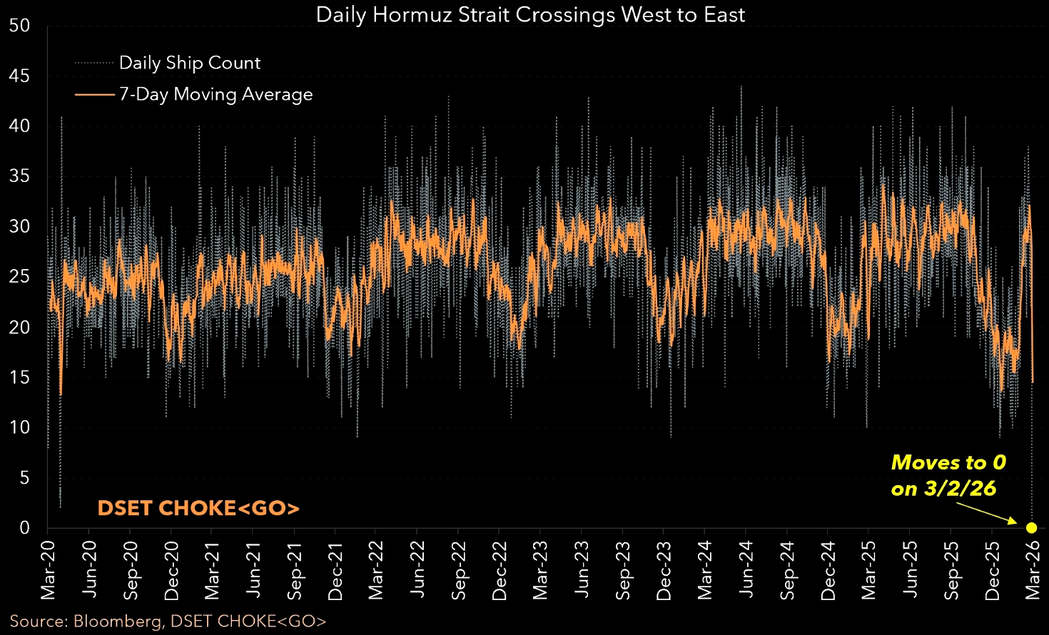 Strait of Hormuz traffic drops to zero.