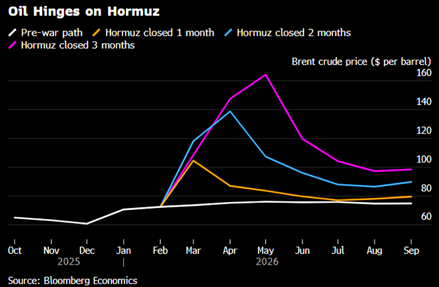 "Strait of Hormuz being closed for 3 months would get Brent crude oil up to $164/barrel."