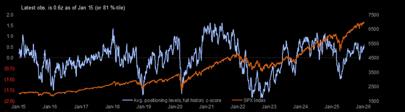JPM: "...our broader US Tactical Positioning Monitor saw another 1wk increase of +1.5z, which has extended the 4wk metric to +1.7z, which puts it back to where it stood in early Dec. Additionally, the level of positioning is back up to +0.6z or 81st %-tile since 2015. Some of the key drivers of the increases recently are a combination of ETF and Retail flows."