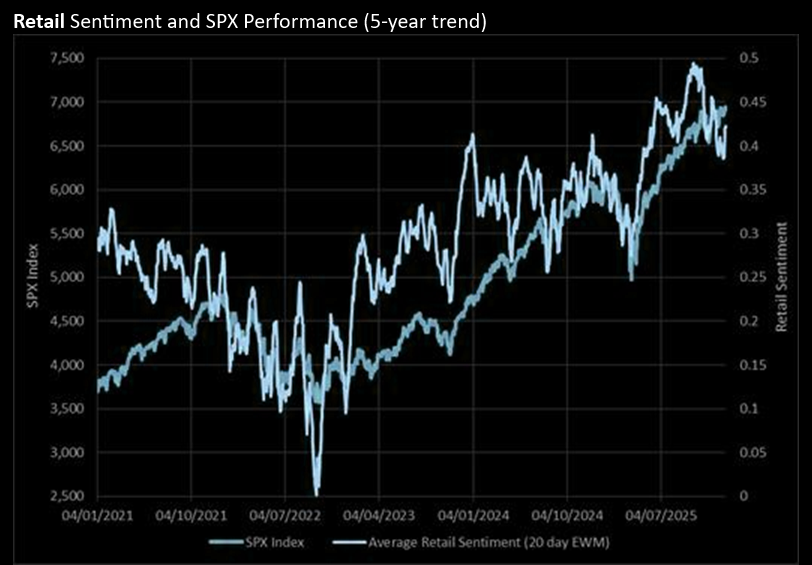 JPM: "...retail sentiment (per our Data Intel team) does not appear to be back to highs yet…"
