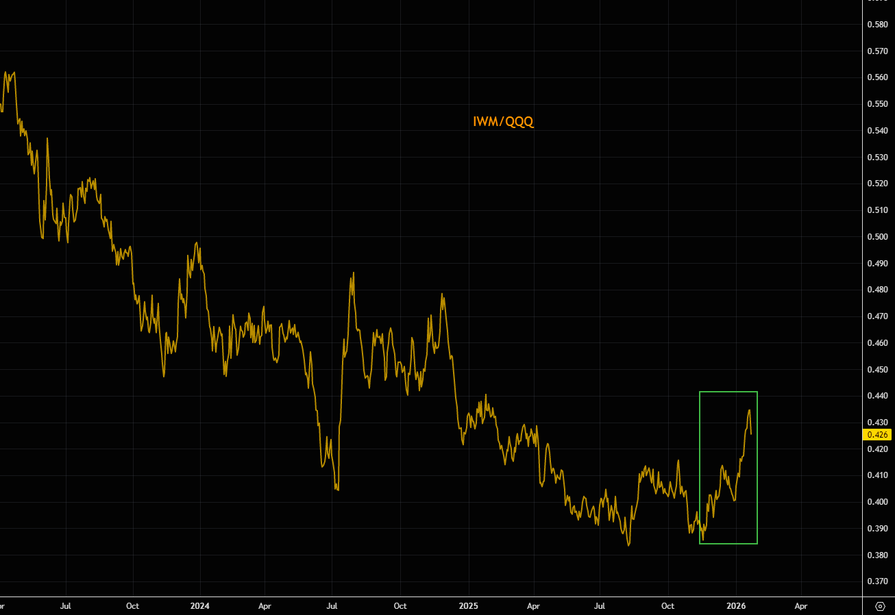 The IWM/QQQ ratio has moved aggressively higher over the past 2 months. We are seeing a much needed pause.