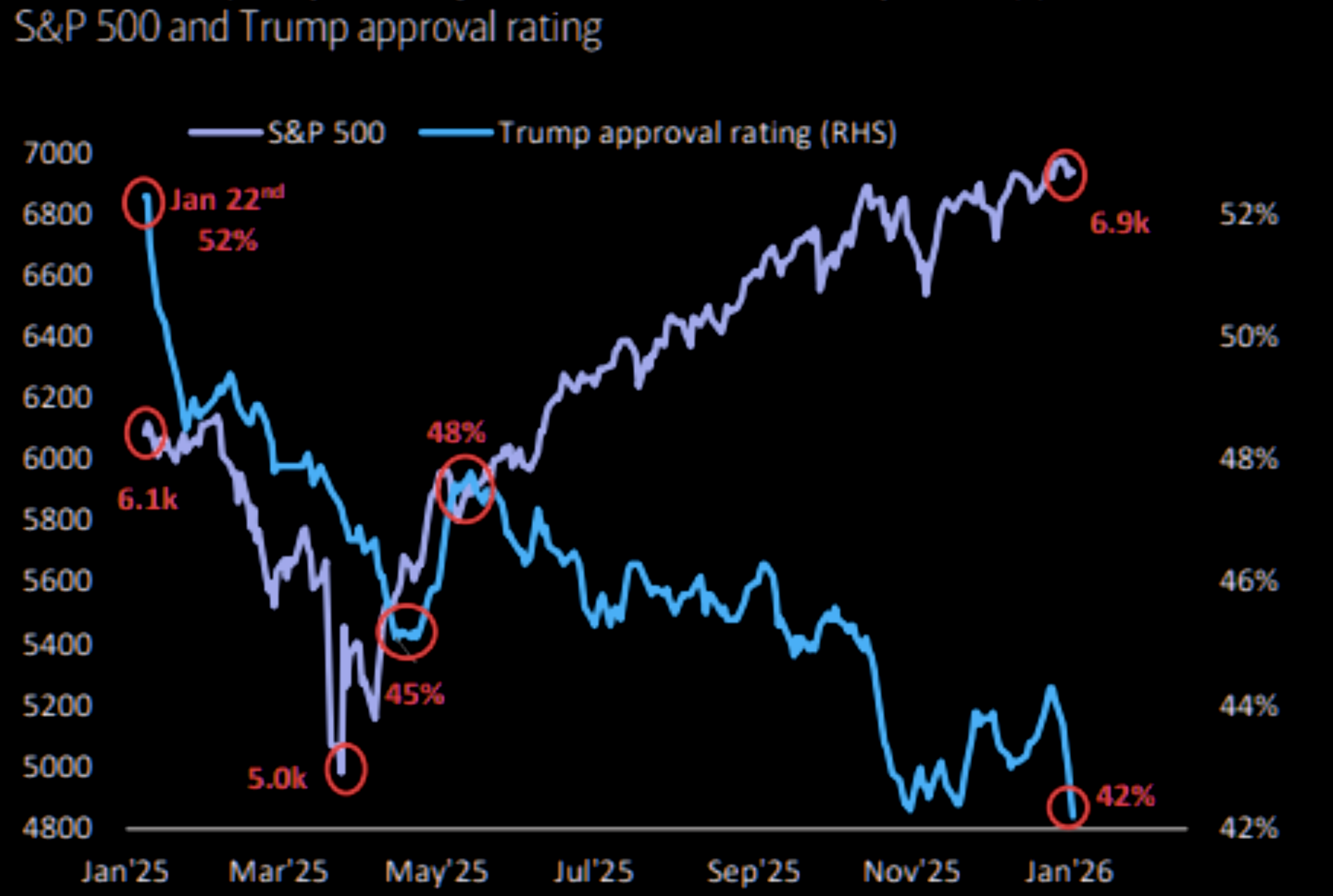 With approval slipping, Trump is pivoting aggressively to address affordability through direct government intervention rather than traditional monetary, fiscal, or trade policy. The strategy targets corporate margins, energy, healthcare, credit, housing, and power, shifting pressure from “big” incumbents toward smaller and mid-cap beneficiaries. This strengthens the case for small and mid-caps as the Main Street, reshoring, and manufacturing trade into the midterms.