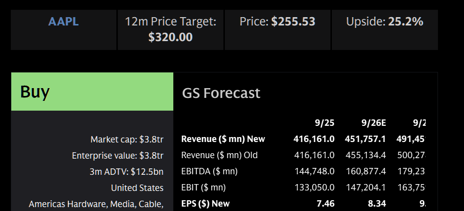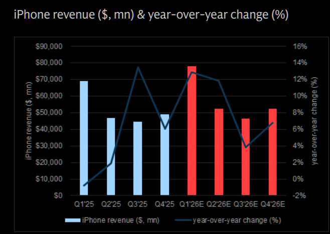 GS: "We estimate iPhone revenue should grow +13% yoy to $78.0 bn in F1Q26E."