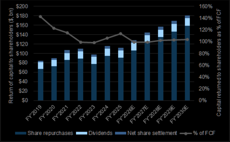 Gs: "AAPL returned >$110 bn of capital back to shareholders in F2024, and we expect this to grow over time as shareholder capital returns scale with growing free cash flow."