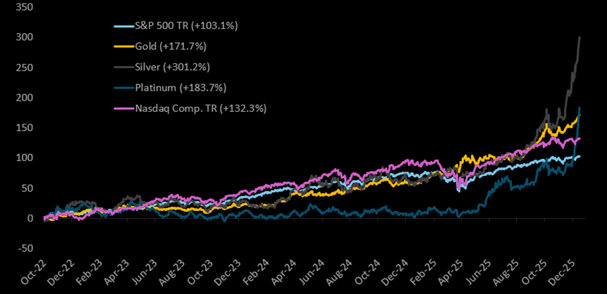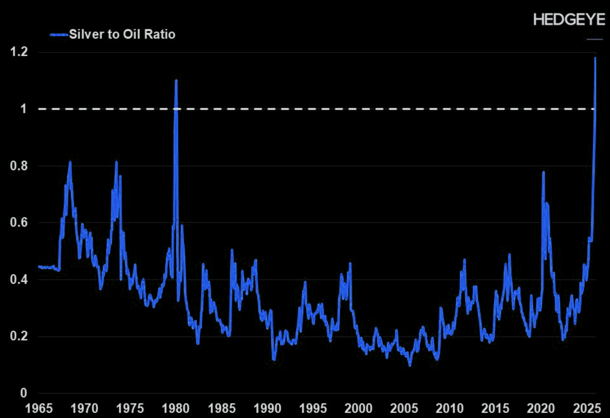Exactly one year ago to the day, we wrote about silver as a buy (link). Then, the case for silver was about recovery, valuation, and optionality. Now it’s about momentum, volume explosions, and historical echoes. When silver starts posting its best weeks since 1998 and inviting constant 1979 comparisons, it’s a sign we’re likely closer to the later innings than the opening act. These are the phases where volatility spikes, narratives harden, and rallies are better sold into than bought..