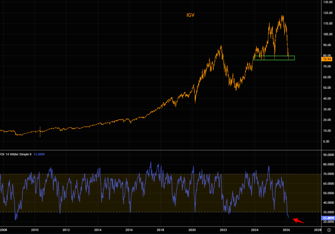 IGV weekly RSI at the most oversold levels since the GFC.