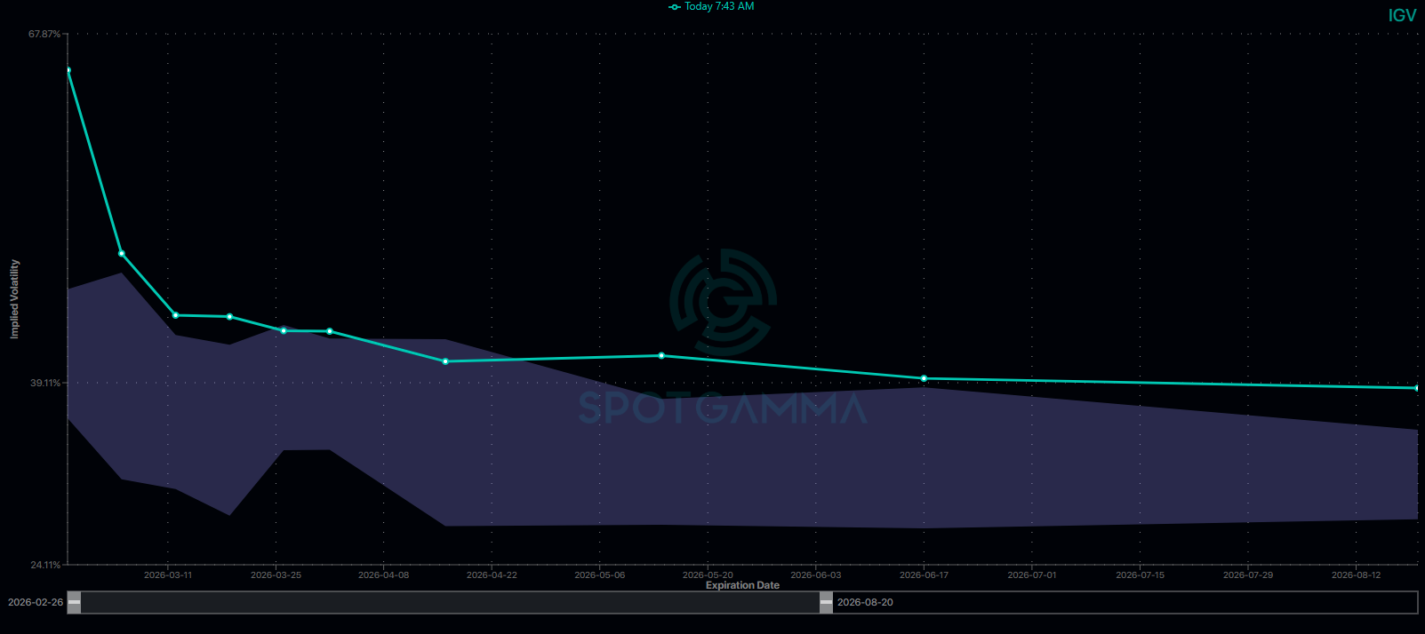 IGV’s term structure is flashing extreme volatility across the curve, with the biggest shock concentrated in the front end, where investors are scrambling for protection in panic mode.