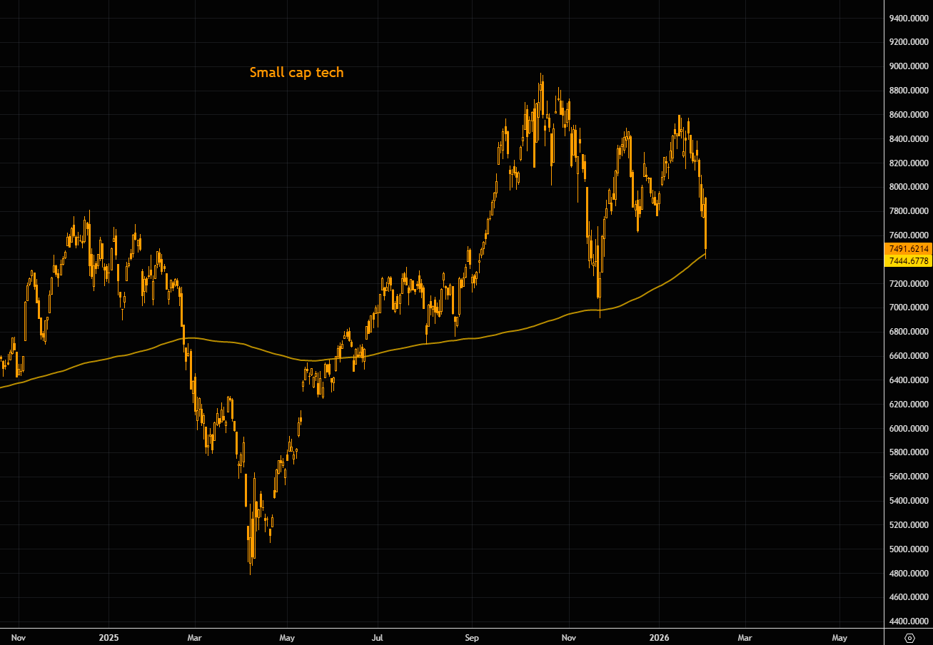 Small tech puking by close to 5% as of writing. Massive down candle, right down to the 200 day MA. Not pretty.